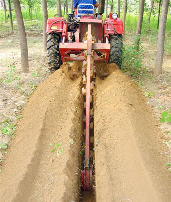配套機型為各種15-35馬力單缸拖拉機頭,采用大駕托起式, 雙排開溝寬度40cm-50cm,深度50cm-100cm。開溝速度100m-300m/h(也可用于單排開溝)。 拖拉機頭前方可配套回填機,回填速度500m-